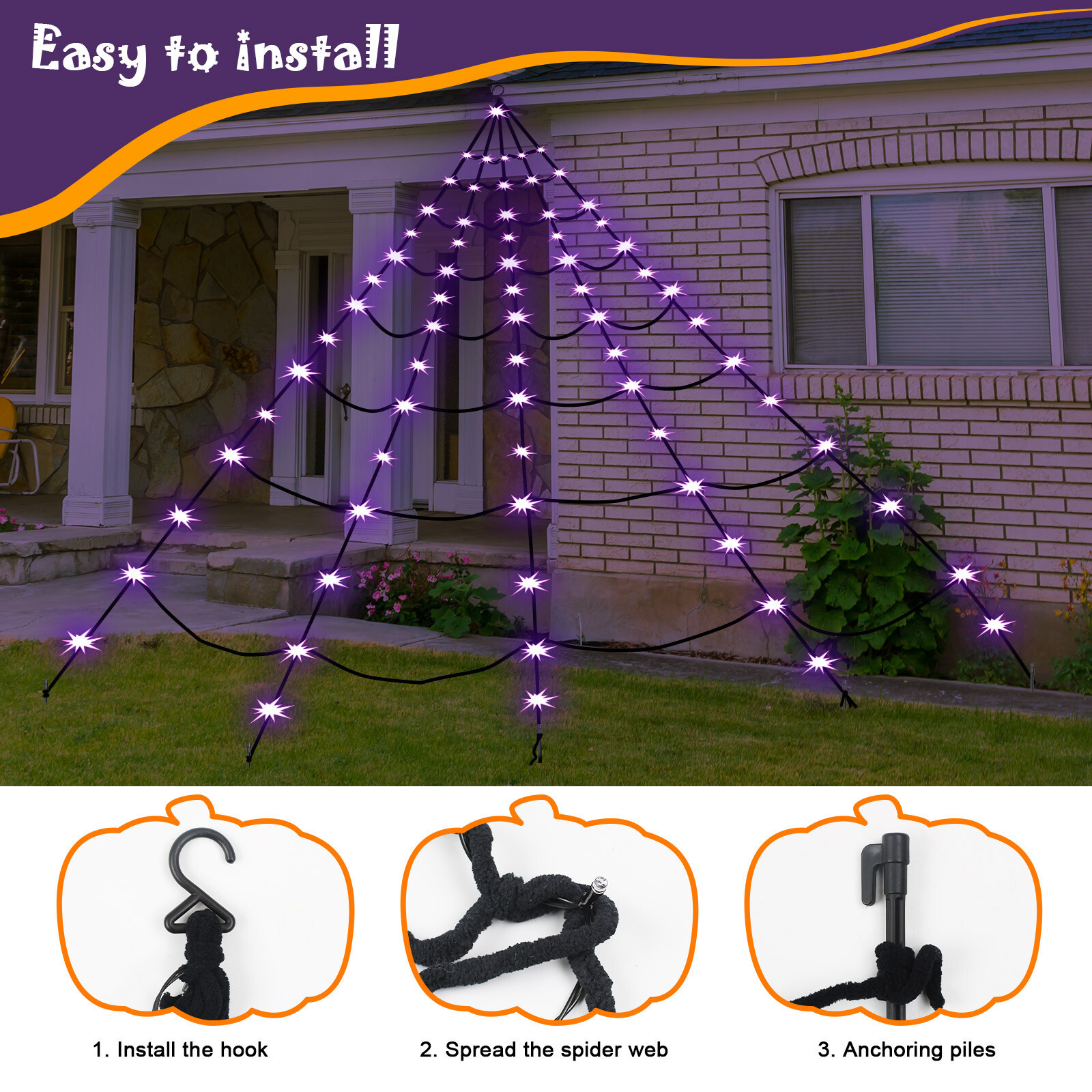 ️【LED Decorative Light】This upgraded black spider web is not only larger than other products on the market, but also comes with 250 static purple LED lights. Let you also increase the Halloween atmosphere of the garden at night and increase the visual effect, attract neighbors, friends and guests with purple lights.
